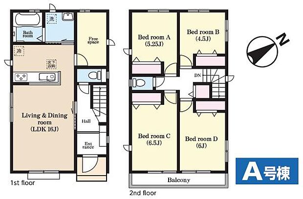 | 間取り | 4LDK 間取り内訳:リビングダイニングキッチン 16帖(1階)・洋室 4.5帖(2階)・洋室 5.2帖(2階)・洋室 6帖(2階)・洋室 6.5帖(2階) |