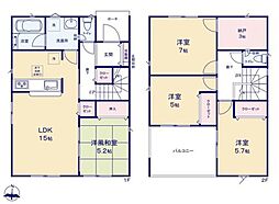 | 間取り | 4LDK 間取り内訳:リビングダイニングキッチン 20.5帖(1階)・洋室 6帖(2階)x2・洋室 6帖(2階)・洋室 5.3帖(2階) |