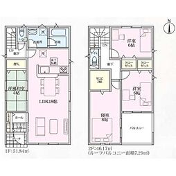 | 間取り | 4LDK 間取り内訳:リビングダイニングキッチン 16帖(1階)・和室 4畳(1階)・洋室 7帖(2階)・洋室 6帖(2階)・洋室 5.2帖(2階) |