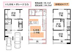 | 間取り | 3LDK 間取り内訳:リビングダイニングキッチン 17.6帖(2階)・洋室 7.5帖(1階)・洋室 6.7帖(1階)・洋室 4.8帖(2階) |