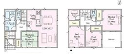 | 間取り | 4LDK 間取り内訳:リビングダイニングキッチン 19帖(1階)・洋室 6帖(2階)・洋室 5.3帖(2階)x3 |