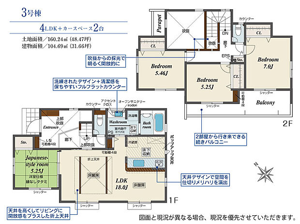 • 「土地(建築条件なし)」の「建物プラン例」に関して、そのプラン例は特定の建築請負会社によるもので、当該建築請負会社以外で建てた場合、同様のものが同価格で建てられるとは限りません。また、建築請負会社を特定するものではありません。