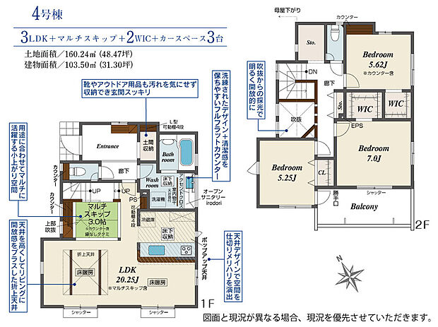 • 「建築条件付き土地」の「建物プラン例」は、土地購入者の設計プランの一例であり、プランの採用可否は任意です。
