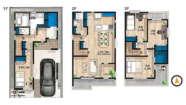• 【外観完成予想図】シックな3階建て住宅!車一台駐車可能でシューズクローク・土間収納完備!