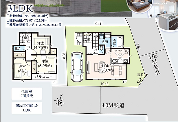 | 土地面積 | 95.00m2(実測) | ||