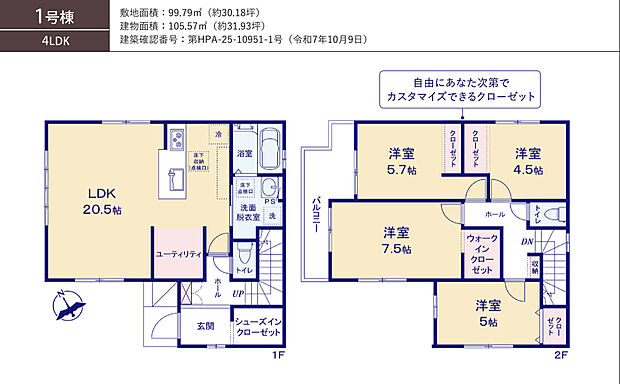 | 間取り | 4LDK 間取り内訳:リビングダイニングキッチン 20.5帖(1階) |