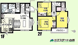 | 間取り | 3LDK 間取り内訳:洋室 5帖(1階)・洋室 5帖(1階)・リビングダイニングキッチン 14.3帖(2階)・洋室 5.3帖(2階) |