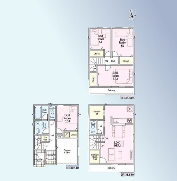 | 間取り | 4LDK 間取り内訳:リビングダイニングキッチン 16.7帖・洋室 5.5帖・洋室 7.5帖・洋室 6帖・洋室 5帖 |