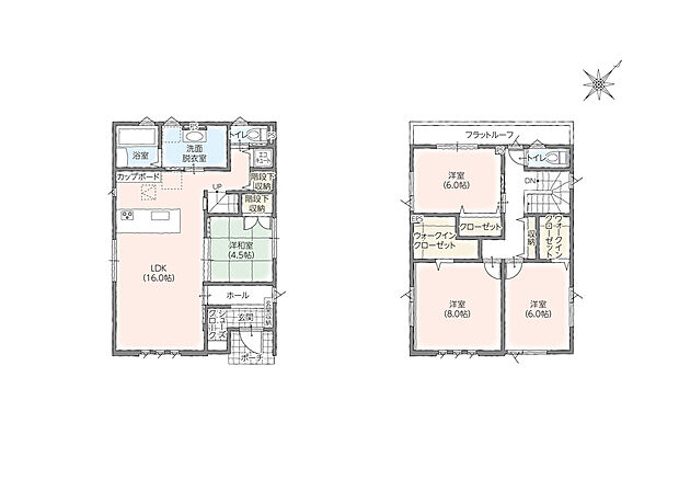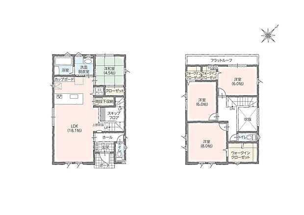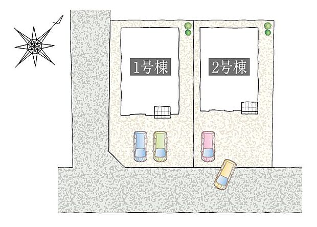 土地面積 1号棟:151.07m2(45.69坪) 2号棟:146.75m2(44.39坪)
