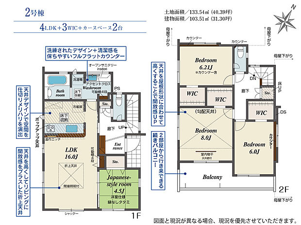 130.08m2(約39.34坪)~133.54m2(約40.39坪) |