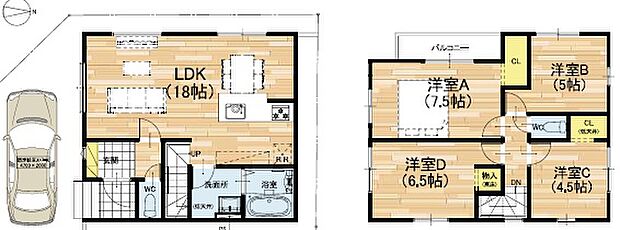 • 「建築条件付き土地」の「建物プラン例」は、土地購入者の設計プランの一例であり、プランの採用可否は任意です。