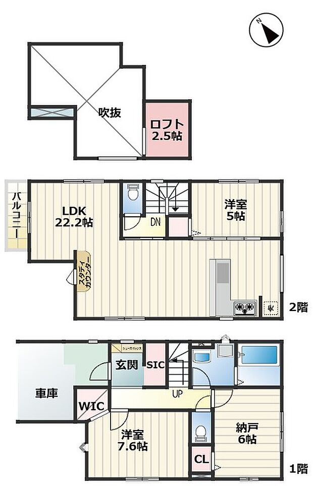 ZEH水準・ロフト付!教育・生活施設が充実の安心の家 【物件情報】 ■高い断熱性と省エネ性能を兼ね備えており、夏涼しく冬暖かい快適な暮らしと、光熱費の低減による 家計への優しさを両立するZEH水準住宅 ■長く安心して暮らせる建物10年瑕疵保証と地盤20年保証 ■季節外の荷物や、お子様の秘密基地など、大容量の収納や趣味の空間として多目的に活用できるロフト ■外からの視線が気になりにくい2階リビング ■在宅ワークやプレイルームとしても利用可能な6帖の納戸 ~周辺環境~ ・たかしま小学校 徒歩13分 ・久方中学校 徒歩17分