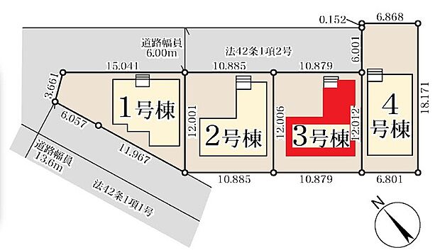 • 北西 (私道 幅員 6.00m 接面 10.80m)