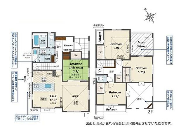 • 「建築条件付き土地」の「建物プラン例」は、土地購入者の設計プランの一例であり、プランの採用可否は任意です。