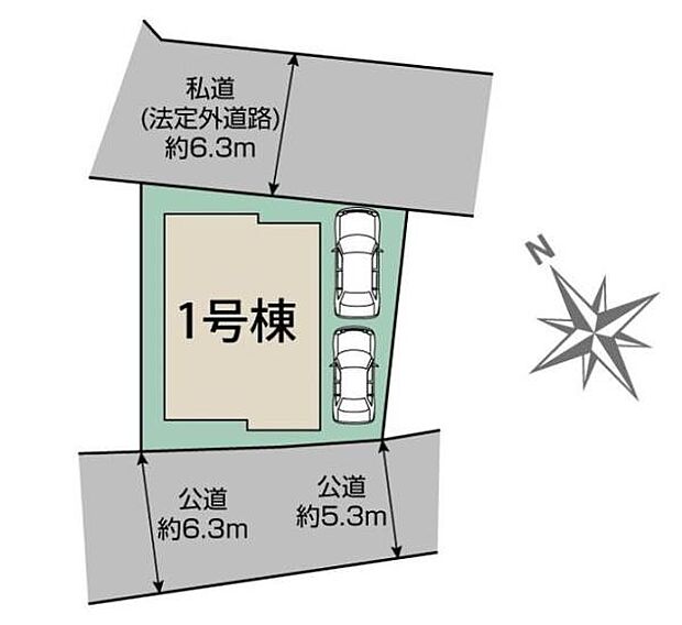 • 北東 (私道 幅員 - 接面 -)