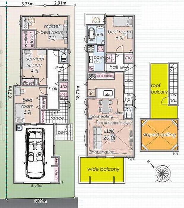 ZEH水準■LDK20帖■床暖房■2階リビング■ルーフバルコニー
