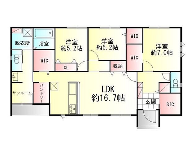 ■JR奥羽本線「神町駅」まで徒歩約15分!■3WIC+SIC+パントリー有り!■サンルーム付きの平屋オール電化住宅!