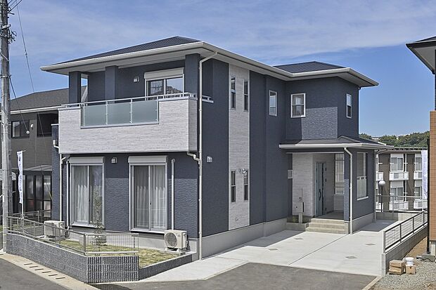 • 【クレストタウン八景水谷II 1号地 外観】建物の存在感がひときわ際立つ、重厚かつ端正な外観デザイン。住まう人の品格をさりげなく伝えます。