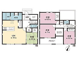 | 間取り | 4LDK 間取り内訳:リビングダイニングキッチン 18帖(1階)・和室 6畳(1階)・洋室 10帖(2階)・洋室 6.7帖(2階)・洋室 6帖(2階) |
