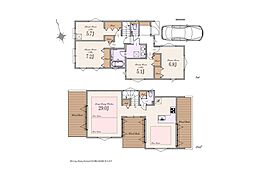 間取り内訳:リビングダイニングキッチン 17帖(1階)・洋室 5.3帖(2階)x2・洋室 6.5帖(2階)・洋室 4.5帖(2階)