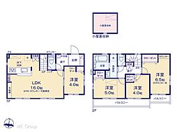 | 間取り | 4LDK(シューズインクローク、ウォークインクローゼット) 間取り内訳:リビングダイニングキッチン 17.7帖(1階)・和室 5畳(1階)・洋室 8.7帖(2階)・洋室 6.1帖(2階)・洋室 6帖(2階) |