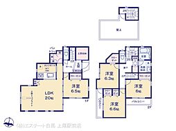 | 間取り | 4SLDK 間取り内訳:リビングダイニングキッチン 20帖(1階)・洋室 6.5帖(1階)・洋室 6.6帖(2階)・洋室 6.3帖(2階)・洋室 6帖(2階) |
