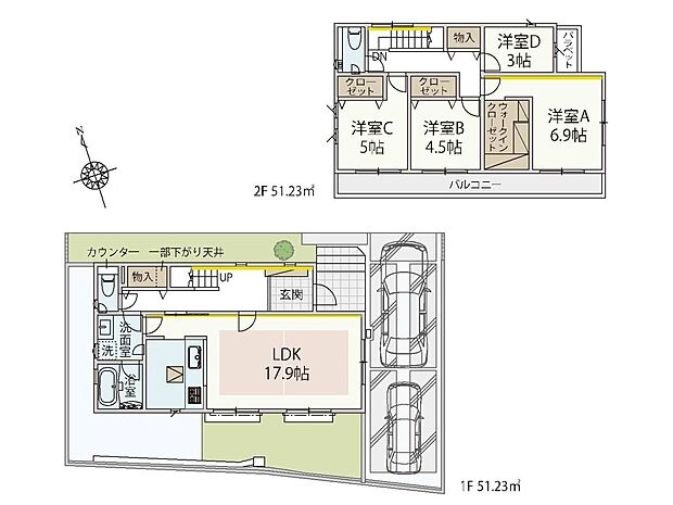 | 販売戸数 | 4戸 | 最多価格帯 | 5000万円台1戸 5200万円台1戸 5100万円台1戸 5400万円台1戸 他 |