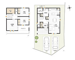 - 「建築条件付き土地」の「建物プラン例」は、土地購入者の設計プランの一例であり、プランの採用可否は任意です。