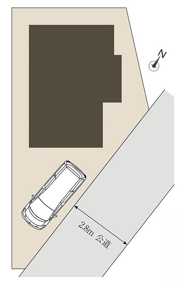 • 備考欄:『接道』一方 南東2.8m公道