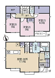 - 「建築条件付き土地」の「建物プラン例」は、土地購入者の設計プランの一例であり、プランの採用可否は任意です。
