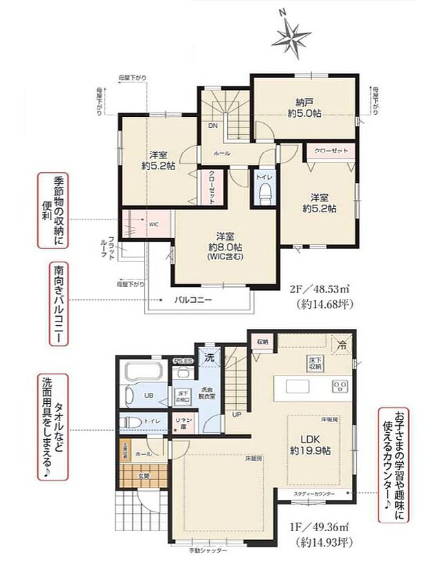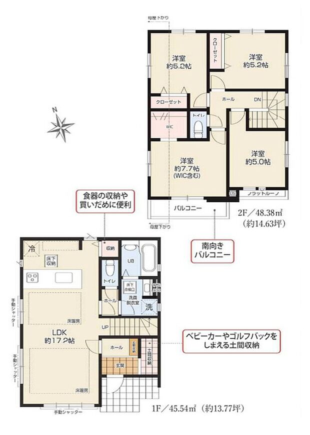 • 【収納スペース】全居室には大型の収納クローゼットを完備!普段使いのお洋服や小物はもちろん、季節物のお洋服などもしっかりと整理整頓おしまい頂けます。居室空間をより広く隅々までお使いいただけますね。