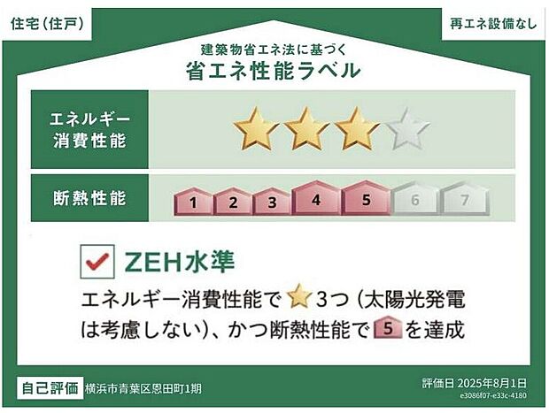 この物件の省エネ性能がわかる「省エネ性能ラベル」です。省エネ性能ラベルは2024年4月以降に建築確認申請した物件などで表示しています。