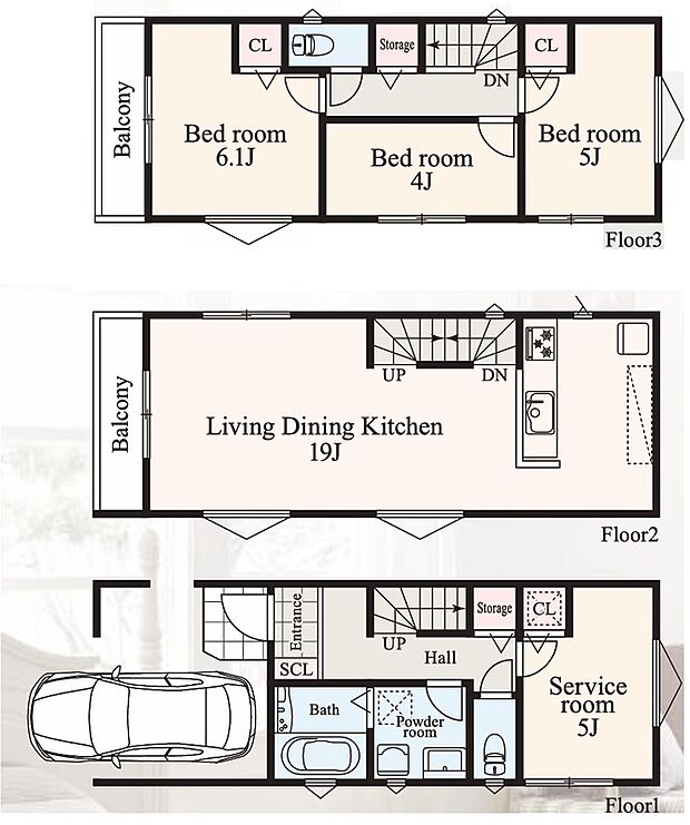 | 間取り | 3LDK+S | 建物階 | 木造3階建 |