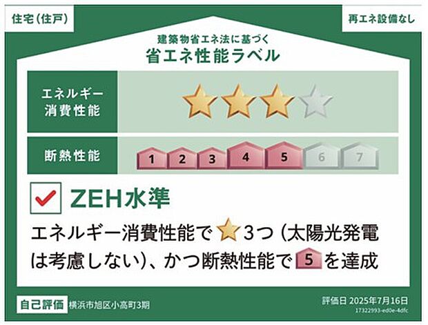 - 星マークの数が多いほどエネルギー消費性能が高いことを示しています。再エネ設備のない住宅は★0~★4の5段階評価、再エネ設備がある住宅は★0~★6の7段階評価となります。
