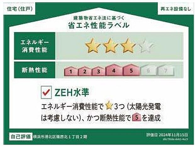 この物件の省エネ性能がわかる「省エネ性能ラベル」です。省エネ性能ラベルは2024年4月以降に建築確認申請した物件などで表示しています。