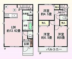 | 間取り | 3LDK 間取り内訳:リビングダイニングキッチン 15.7帖(1階)・洋室 5.2帖(2階)・洋室 5.6帖(2階)・洋室 6.5帖(2階) |