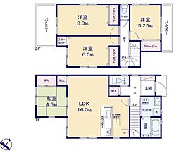 | 間取り | 4LDK 間取り内訳:リビングダイニングキッチン 15.2帖(1階)・洋室 4.5帖(1階)・洋室 7.7帖(2階)・洋室 5.2帖(2階)・洋室 5.2帖(2階) |