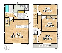 間取り内訳:リビングダイニングキッチン 18.2帖(1階)・洋室 7.5帖(1階)・洋室 6.5帖(2階)x2