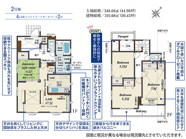 • 建物の内容は、土地購入者の自由意思により決定可能で、土地売買契約後、 建築請負会社と購入した土地に建設する建物について協議することになります。