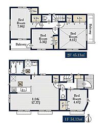 - 「建築条件付き土地」の「建物プラン例」は、土地購入者の設計プランの一例であり、プランの採用可否は任意です。