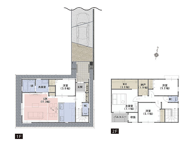土地面積 113.39m2(A号棟)~125.69m2(B号棟)