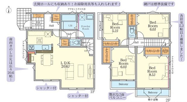 浴室乾燥機 フラット35Sに対応 クロゼット 駐車2台可 TVモニタ付インターホン 冷めてしまったお風呂も簡単に温めなおすことができる追焚のある浴室です TVインターホン付きでお子様のお留守番も安心です。108.47m2の建物面積でスペースの面でも問題なく快適に過ごせますよ。こちらの物件は南向きです。
