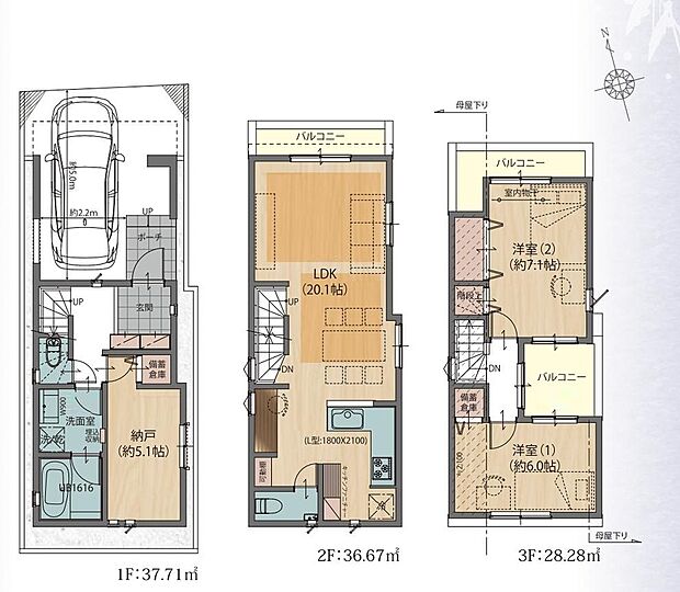 | 間取り | 2LDK+S ~ 2LDK+2S | 建物階 | 木造3階建 |