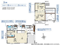 | 間取り | 2LDK 間取り内訳:リビングダイニングキッチン 20帖(1階)・洋室 8帖(2階)・洋室 6帖(2階) |
