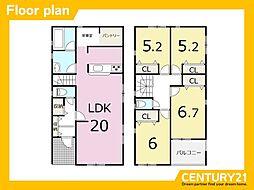 | 間取り | 3LDK 間取り内訳:リビングダイニングキッチン 17帖(1階)・洋室 7.5帖(2階)・洋室 6帖(2階)・洋室 6帖(2階) |