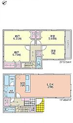 間取り内訳:リビングダイニングキッチン 18帖(2階)・洋室 5.3帖(2階)・洋室 6.5帖(1階)・収納 5.3帖(1階)