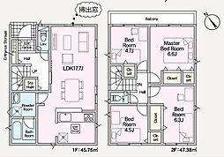 | 間取り | 5LDK 間取り内訳:リビングダイニングキッチン 17.2帖(1階)・和室 4.5畳(1階)・洋室 8帖(2階)・洋室 6帖(2階)・洋室 5.2帖(2階)・洋室 5.2帖(2階) |