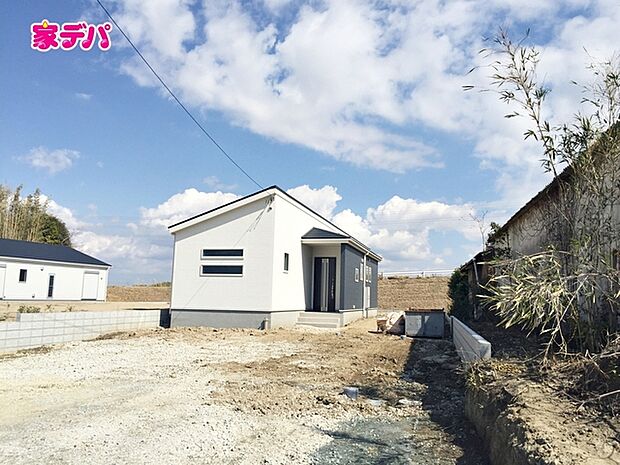 • 【2号棟】足場解体しました! ・長期優良住宅 ・平屋建て住宅 ・4LDK ・LDK17帖、隣接洋室4.44帖 ・全居室収納完備 ・WIC完備 ・南庭 ・駐車場並列3台可