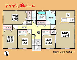 間取り内訳:リビングダイニングキッチン 18帖(1階)・洋室 4.5帖(1階)・洋室 7帖(1階)・洋室 5.2帖(1階)・洋室 5.2帖(1階)