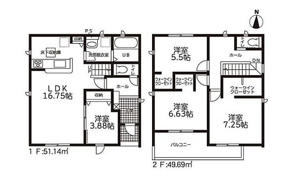 | 間取り | 4LDK 間取り内訳:リビングダイニングキッチン 16.7帖(1階)・洋室 3.8帖(1階)・洋室 5.5帖(2階)・洋室 6.6帖(2階)・洋室 7.2帖(2階) |
